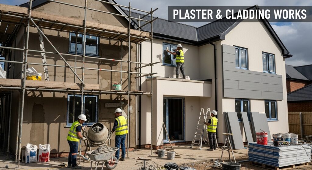 Professional plastering and cladding services for interior and exterior surfaces. Smooth finishes and protective cladding.